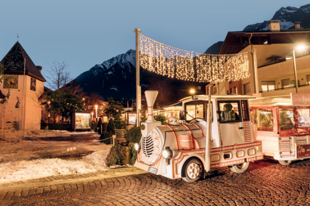 Während der gesamten Christkindlmarktzeit bringt euch unser kostenloses „Zugele” bequem vom Algunder Christkindlmarkt nach Meran – und natürlich wieder zurück. Ab dem späten Nachmittag fährt der Zug von Meran weiter zu den Gärten von Schloss Trauttmansdorff, wo die LUMAGICA mit ihrer eindrucksvollen Lichtwelt auf euch wartet. Einfach einsteigen, genießen und ganz ohne Auto die schönsten Plätze im Advent erleben.